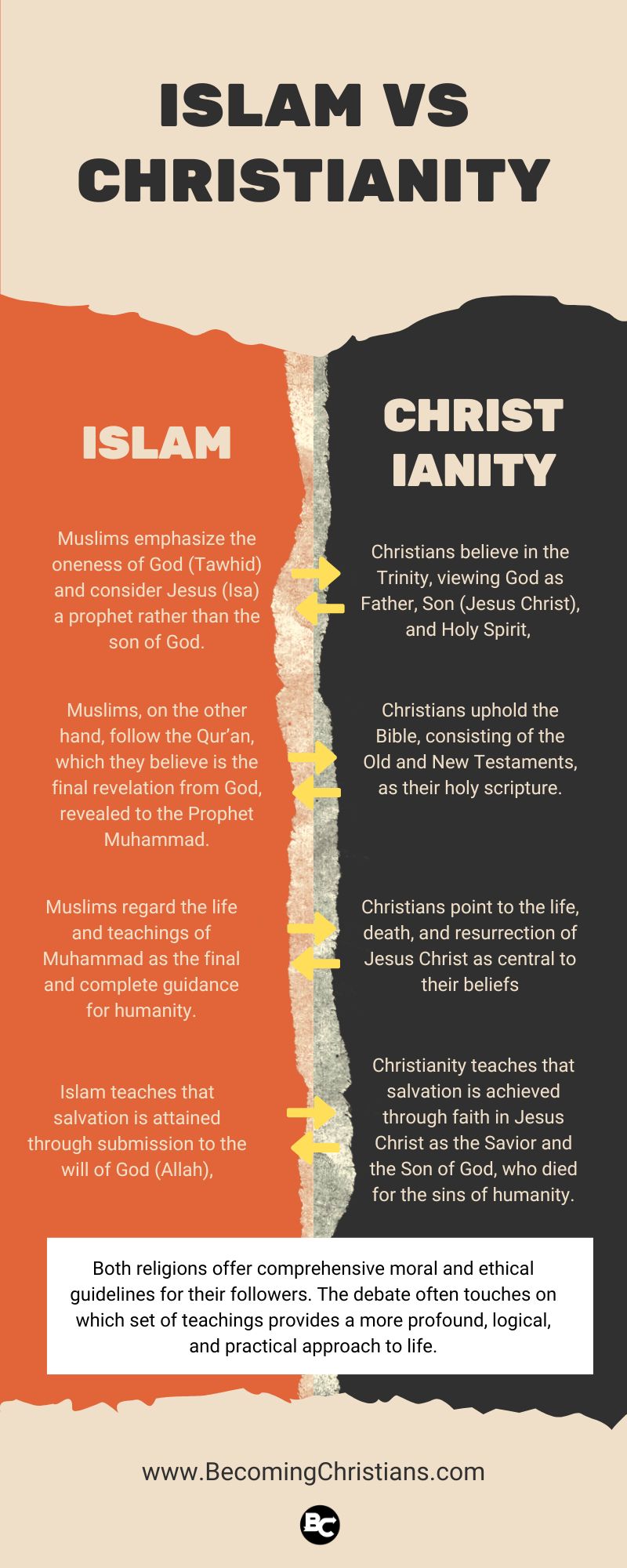 Understanding these key differences and the reasons behind each religion’s claims is essential to engaging in the Islam vs. Christianity debate with respect and intellectual honesty.