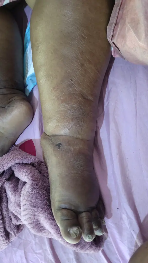 Her condition, known as anasarca, is a severe and systemic form of edema that affects her feet, legs, arms, and belly. Her liver, kidneys, and heart are all struggling, and she now has an open wound on her hand from the swelling that burst her skin.