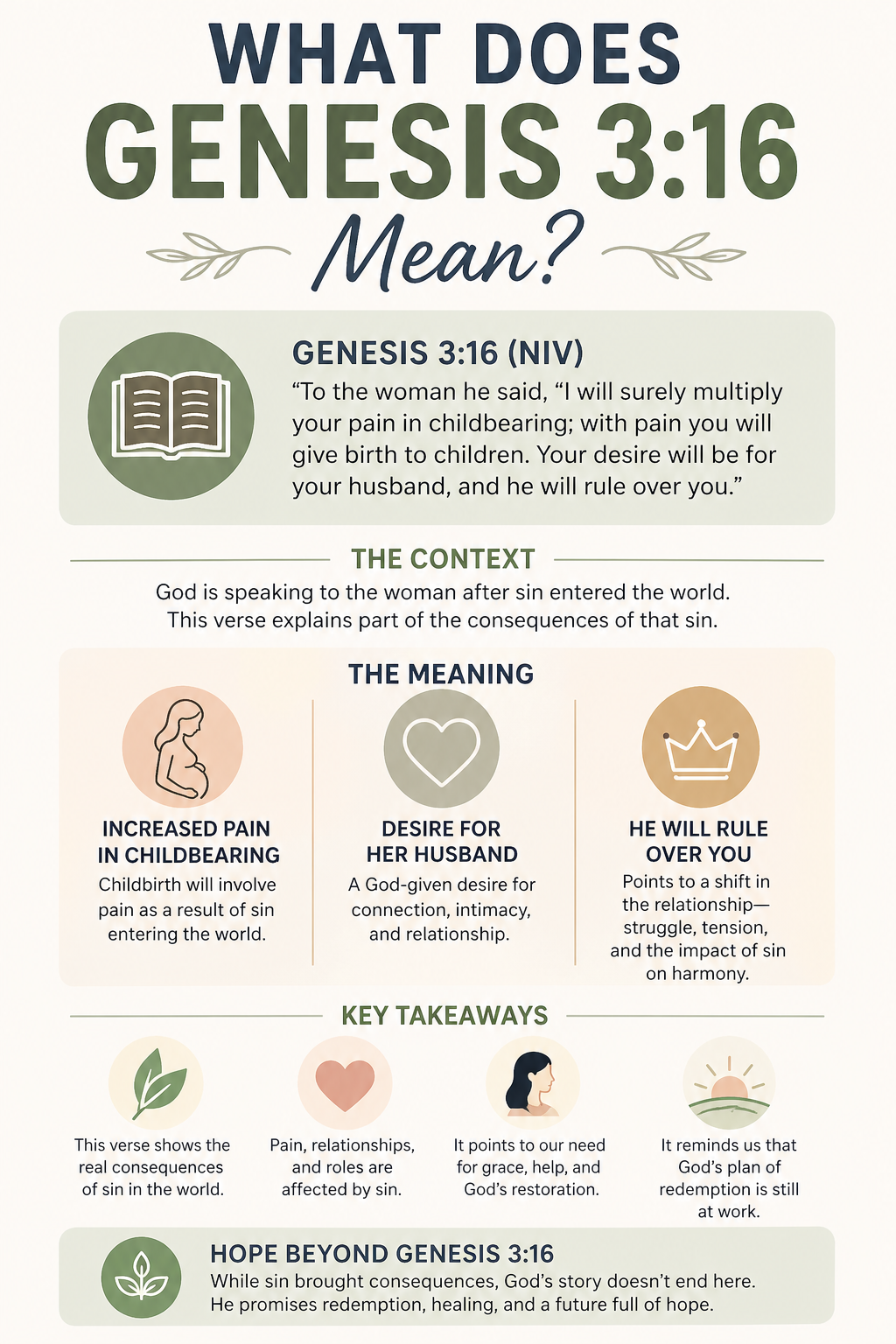 The pain of childbirth, the power struggles of marriage, the cycles of manipulation and domination that mark so much of human history — Genesis 3:16 names all of it honestly. But it does not have the final word.