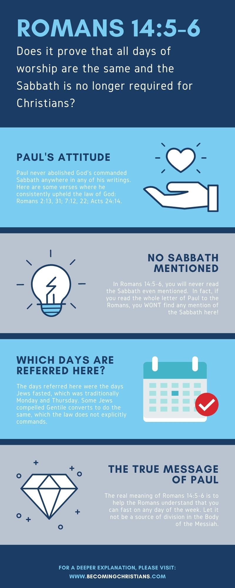 In fact, if you read the whole letter of Paul to the Romans, you WON’T find any mention of the Sabbath here!