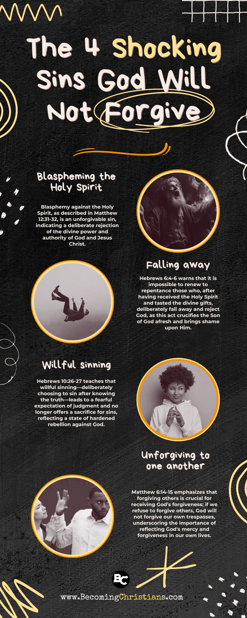 So, what are these sins? Here are the four surprising and little-known sins God will not forgive: